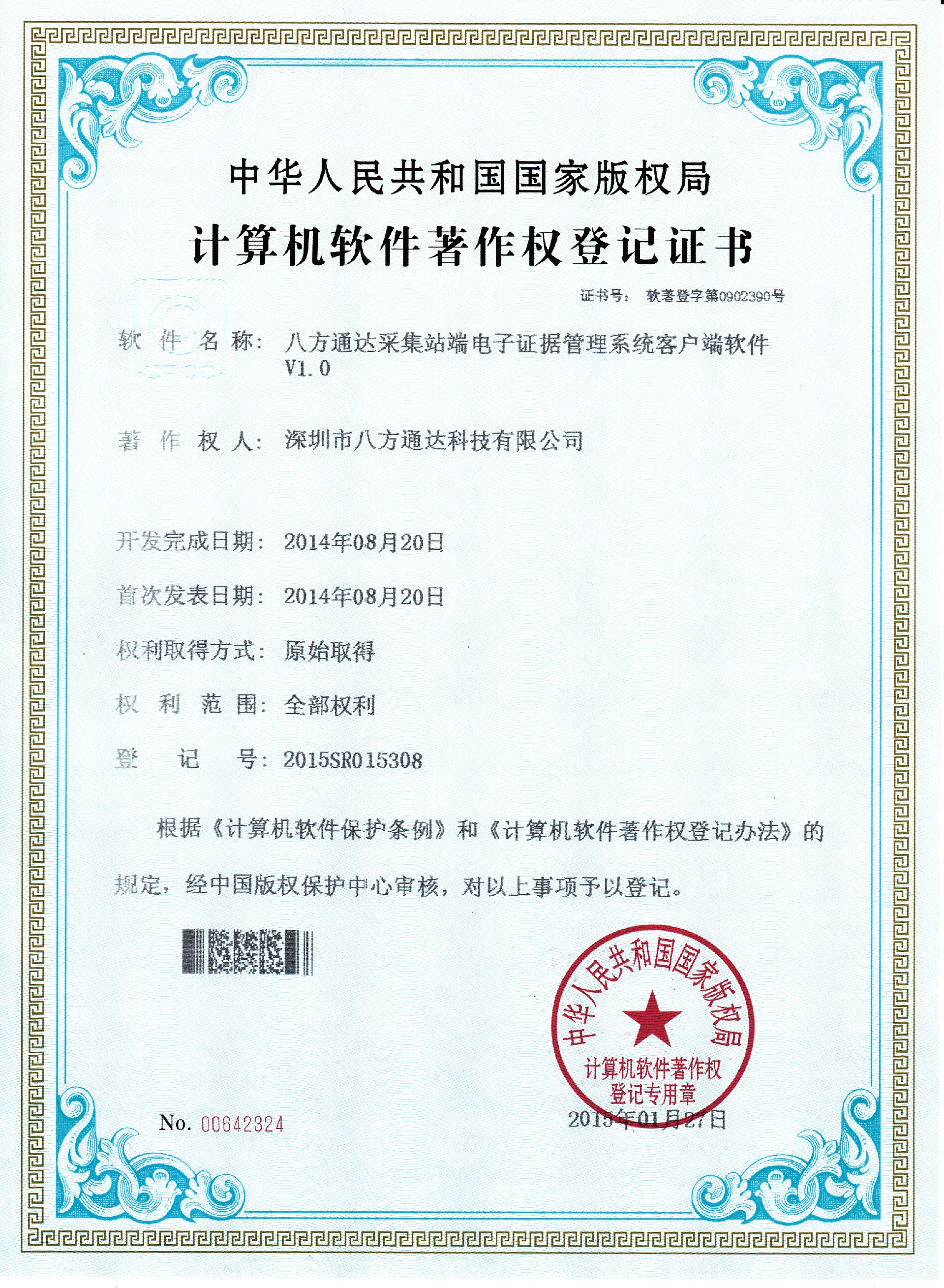 研發(fā)出首款電子單警執(zhí)法視音頻記錄系統(tǒng)管理平臺(tái)并申請(qǐng)了相關(guān)軟件著作權(quán)7項(xiàng)